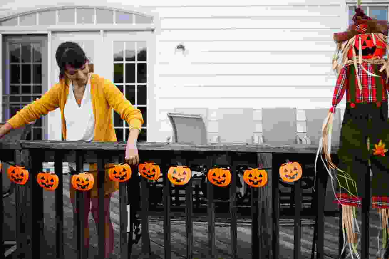 The best places to decorate are where the eye goes first. Focus on the front entryway, coffee tables, and near large artwork. Your entire home will become a haunted house with just a few strategic spots filled with jack-o-lanterns and ghosts.